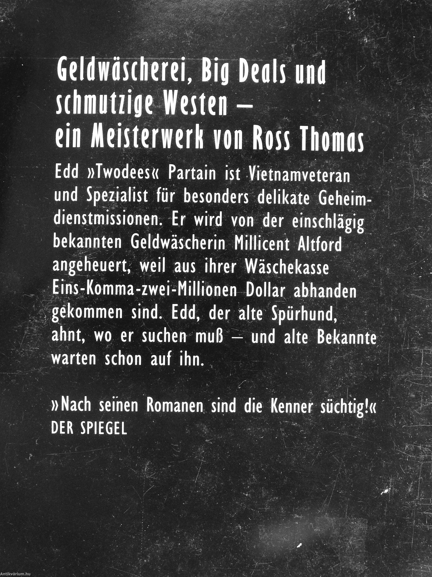 Edd »Twodees« Pártáin ist Vietnamveteran und Spp7iarist für be nnders delikate G^heim-dienstmissiúíien. Er wird von der einscindgig bekarihten Geldwäscherin Millicent Altford angeheuert," weil aus ihrer VVäschekasse Eins-Komma-zwei-Millionen Dollar abhanden. ekommen sind. Edd, der alte Sp-'^hund, ahnt, wo er suchen muss - und alte Bekannte warten schon auf ihn.,