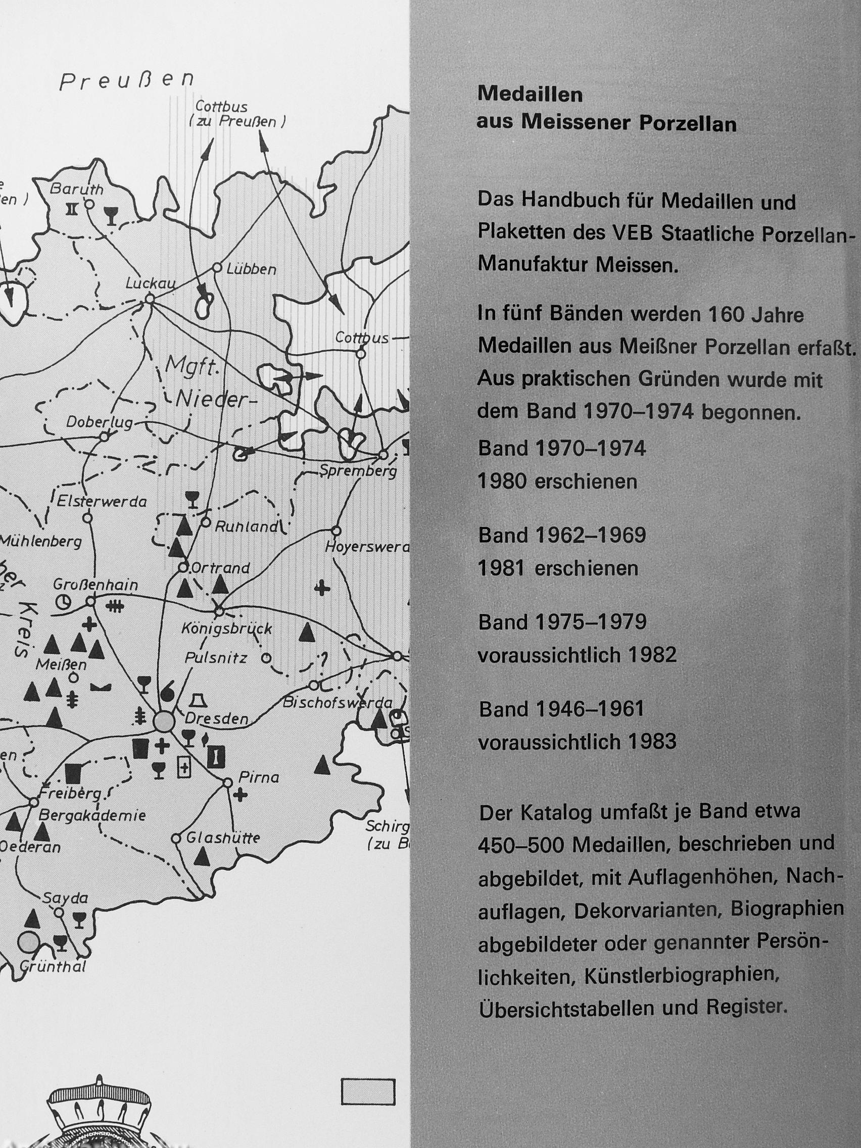 In fünf Bänden werden 160 Jahre Medaillen aus Meißner Porzellan erfaßt. Aus praktischen Gründen wurde mit dem Band 1970-1974 begonnen. Band 1970-1974