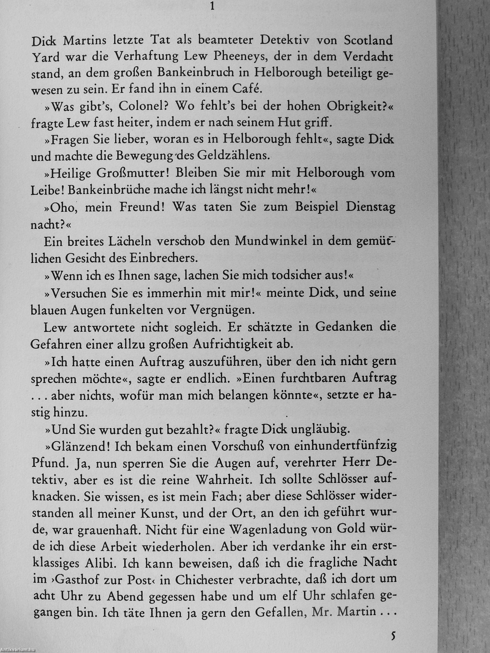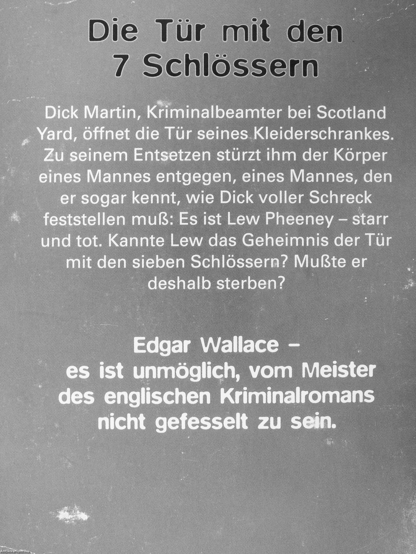 er sogar kennt, wie Dick voller Schreck feststellen muß: Es ist Lew Pheeney- starr und tot. Kannte Lew das Geheimnis der Tür mit den sieben Schlössern? Mußte er deshalb sterben? - -