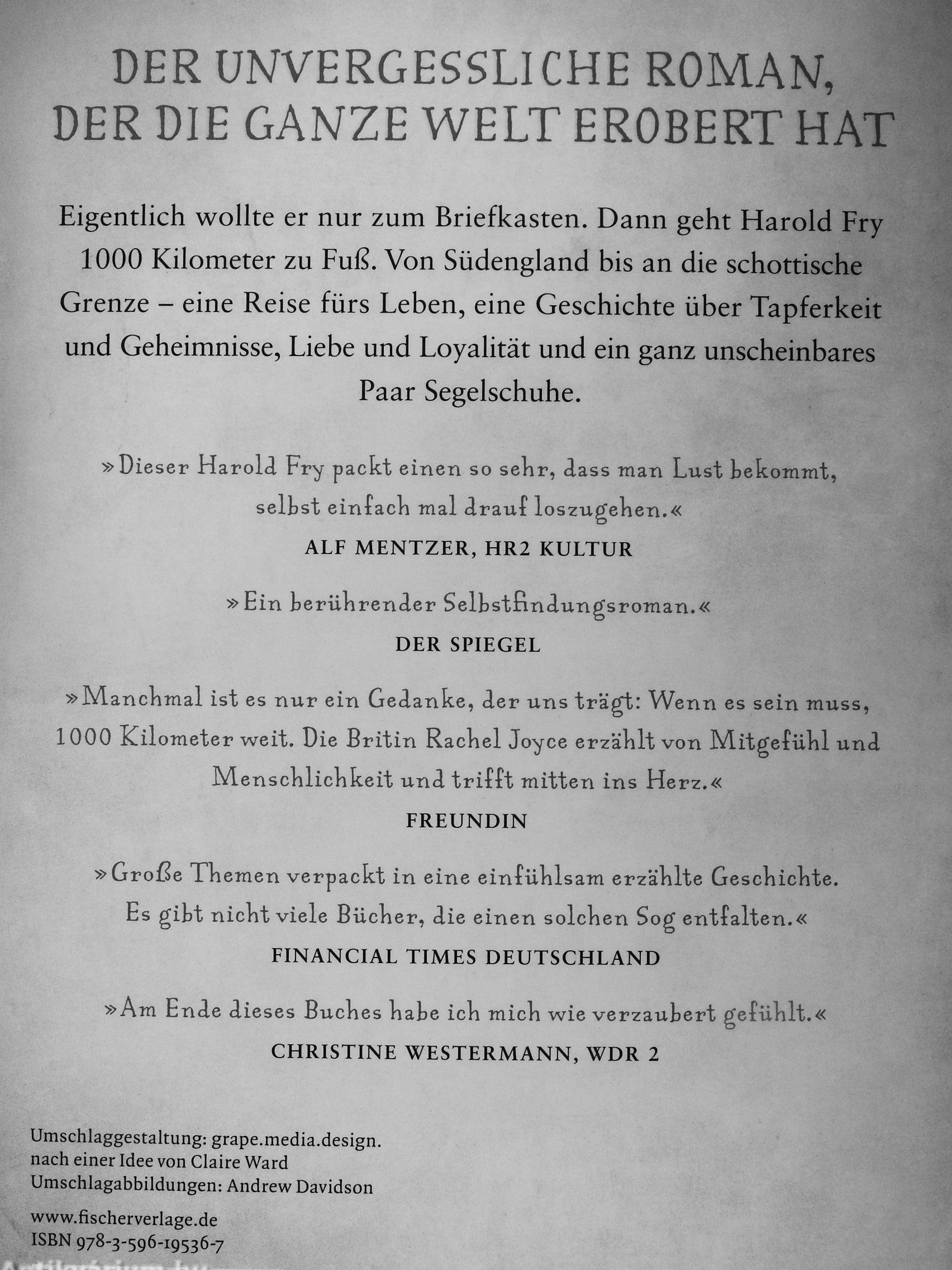 »Dieser Harold Fry packt einen so sekr, iass man Lust bekommt, selbst einfach mal ?rauf loszugehen.« ALF MENTZER, HR2 KULTUR
