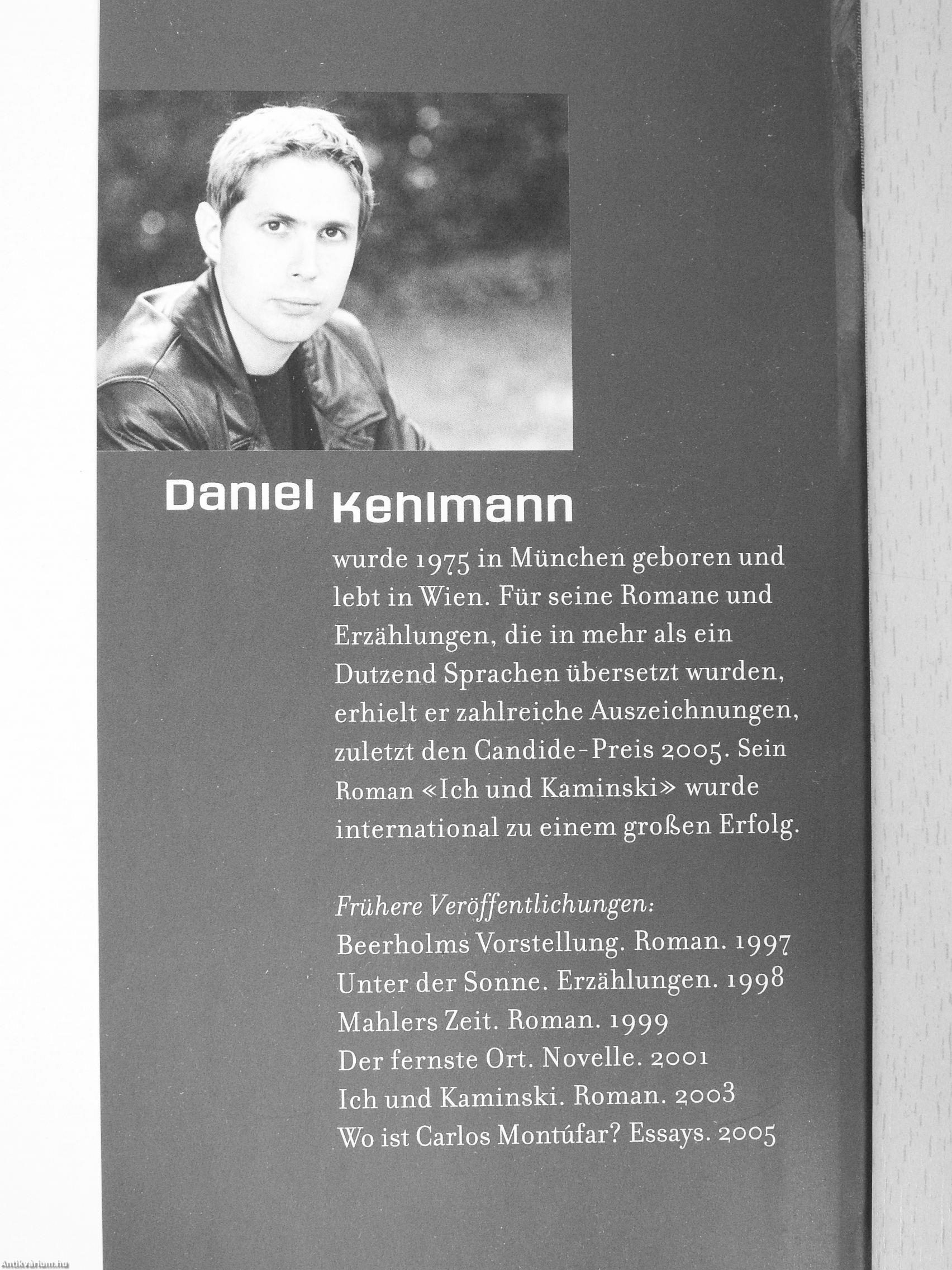 Frühere Veröffentlichungen: Beerholms Vorstellung. Roman. 1997 Unter der Sonne. Erzählungen. 1998 Mahlers Zeit. Roman. 1999 Der fernste Ort. Novelle. 2,001 Ich und Kaminski. Roman. 2,oo3 Wo ist Carlos Montüfar? Essays. :?oo5