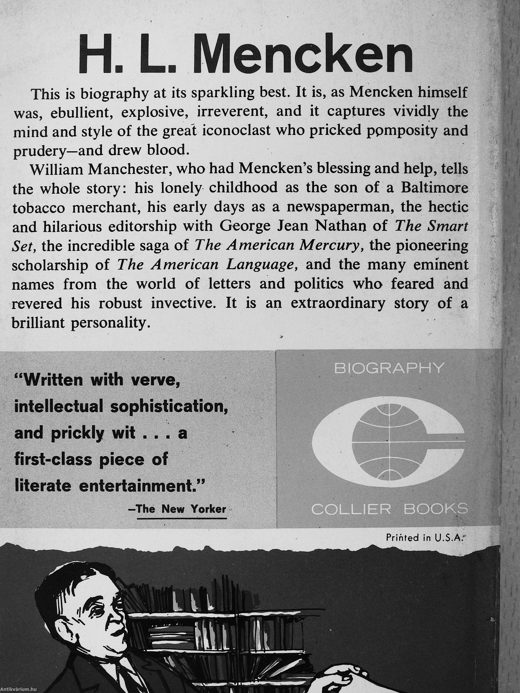 This is biography at its sparkling best. It is, as Mencken himself was, ebullient, explosive, irreverent, and it captures vividly the mind and style of the great iconoclast who pricked ppmposity and prudery—and drew blood.