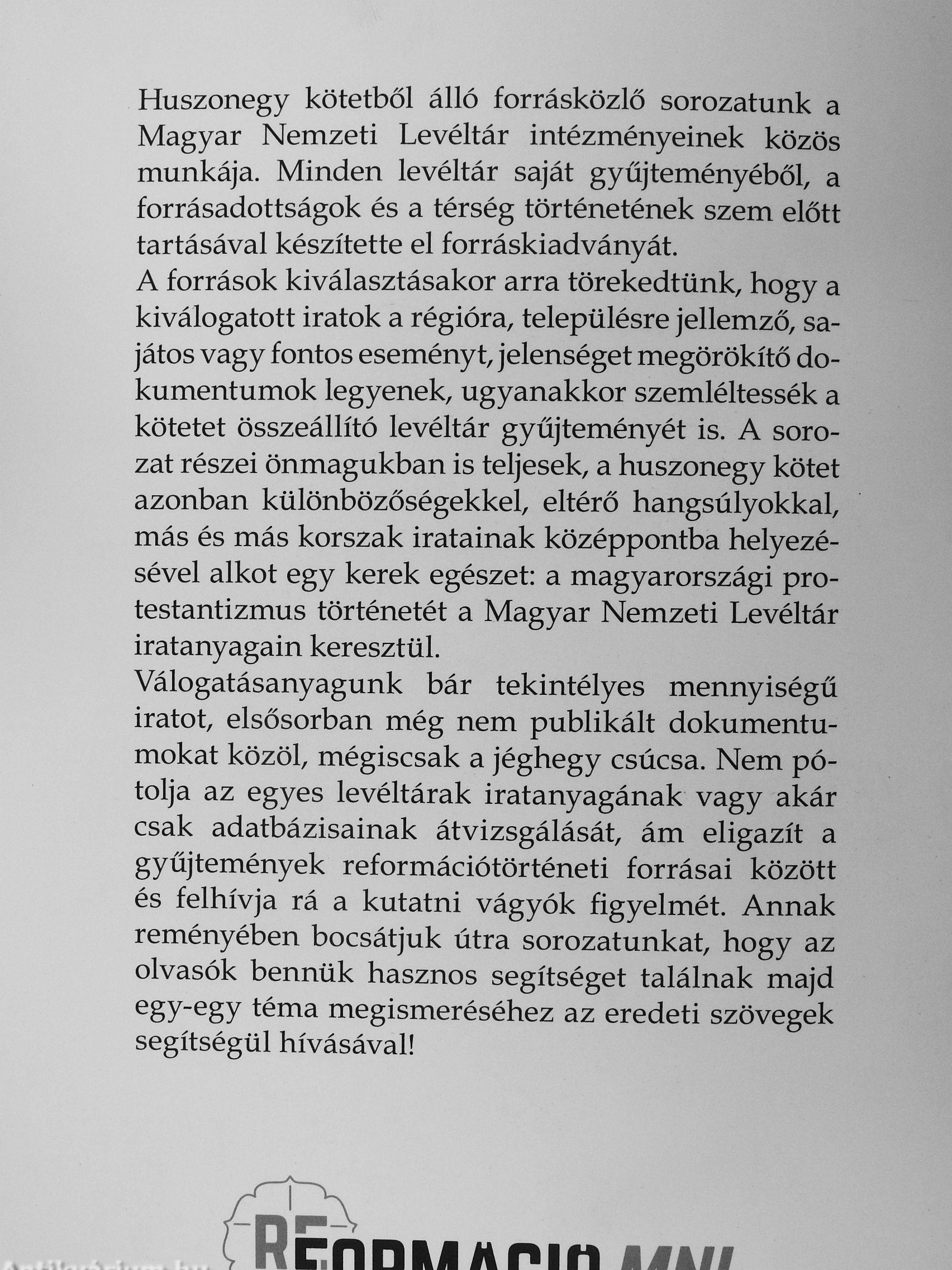| Sorozatcím: | Forrásaink a reformációról |