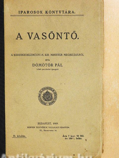 | Megjegyzés: | Második kiadás. Fekete-fehér ábrákkal illusztrálva. Irta Dömötör Pál felső ipariskolai igazgató. |