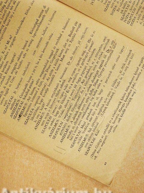 (Ulászló magábaroskadva ül királyi székén. Mellette egyik oldalon az udvari orvos, a másik oldalon az udvari pap. A király puffadt, beteges külsejű ember, ritkás haja ősz, ruhája lompos fekete kámzsa. Sápadt ujjai közt olvasót morzsol. A terem jobboldalán, az ajtó közelében, nagy sárgaréz földgömb áll, a királyi gyermekek, a csúnya kis Lajos és az angyali Anna ezt forgatják kíváncsian. Oldalukon nevelőjük, Bornemissza.)
