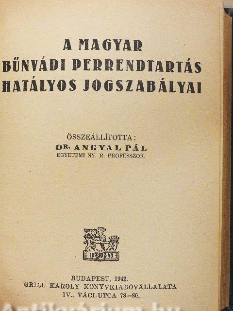 | Megjegyzés: | Általános Nyomda és Grafikai Intézet Részvénytársaság nyomása, Budapest. Összeállította Dr. Angyal Pál egyetemi ny. r. professzor. |