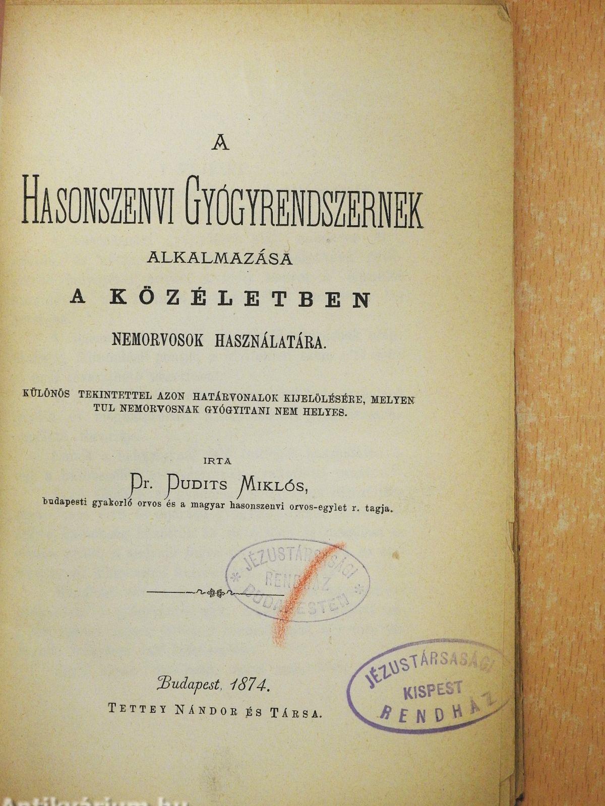| Megjegyzés: | Írta: Dr. Dudits Miklós, budapesti gyakorló orvos és a magyar hasonszenvi orvos-egylet r. tagja. Részben felvágatlan példány. Nyom. a lyc.-nyomd. Pécsett. |