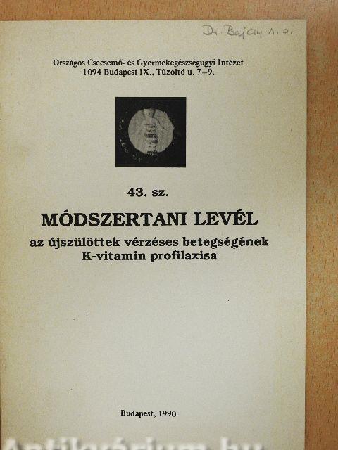 "Az újszülöttek vérzéses betegségének (morbus haemorrhagicus neonatorum) első leírása 1894-ből Townsendtől ered. 1926-ban Damm felfedezte a K-vitamint. Brinkhous 1937-ben állapította meg, hogy e betegség hypoprothrombinaemiára vezethető vissza, majd 1939-ben Weddele és mtsai a K-vitamin-hiány eredetet tisztázták. Miután a kórok egyértelmű volt, már a 40-es években próbálkozások történtek a betegség megelőzésére K-vitamin adásával. Négy évtized telt azonban el addig, amíg összegyűltek azok a pathofiziológiai és farmakológiai ismeretek, melyek alapján kikristályosodott a megelőzés legteljesebb körben alkalmazható, hatásos, ugyanakkor szövődménymentes és gazdaságos formája." Vissza