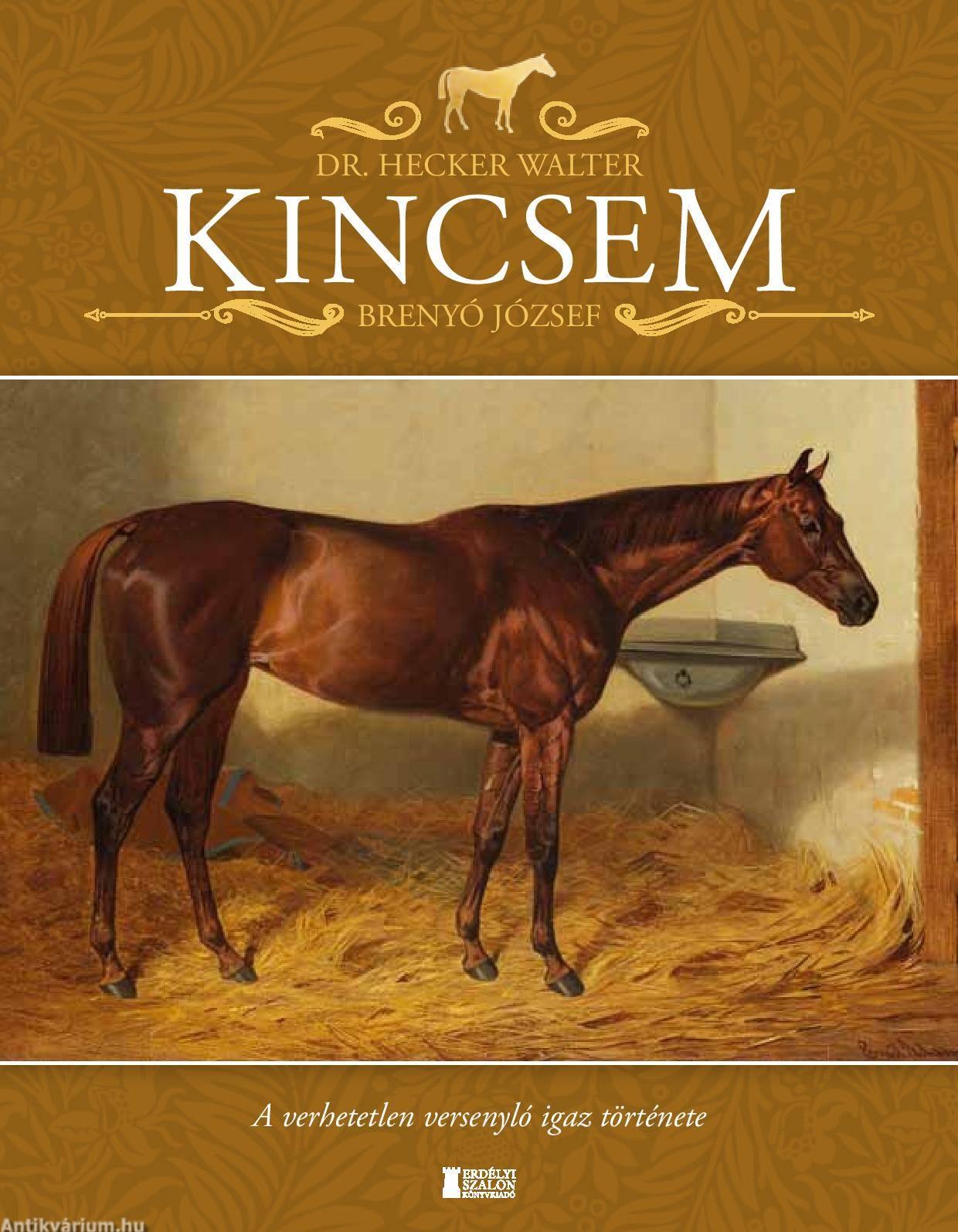 Dr. Hecker Walter hippológus professzor és Brenyó József évek óta kutató, adatgyűjtő munkát végez a témában, együttműködésüket több sikeres szakkönyv megjelentetése is igazolja. Ezúttal a Kincsem-történetnek eredtek a nyomába: Legendák és valóság, mítoszok és hétköznapok, a magyar lovassport és a Kincsem korának rejtelmei egy kötetben több száz korabeli fotó, reklámanyag, festmény és szaklap képeinek kíséretében. És a teljes sztori, Kincsem szűk másfél évtizedes története, versenyeredményei és a tenyésztésben betöltött szerepe, utódainak, tulajdonosának és trénerének élettörténetével. A különleges képes kötet nem kerüli meg a történelmi időszak bemutatását sem, a reformkortól kezdődő-éledő magyar lótenyésztés állomásai éppúgy bemutatásra kerülnek, ahogy a Monarchia színes úri világának lovassport szenvedélye és annak magyar és európai állomásai, nem mellőzve a nemzetközi kitekintést sem.