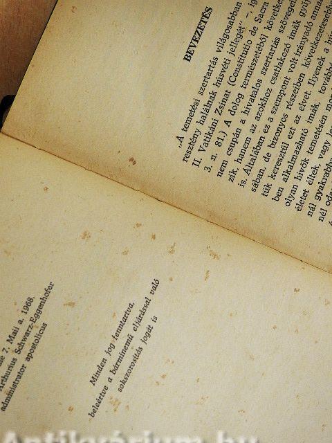 ,,A temetési szertartás világosabban fejezze ki a keresztény halálnak húsvéti jellegét" így intézkedett a II. Vatikáni Zsinat (Constitutio de Sacra Liturgia, cap. 3. n. Sl.) A dolog természetéből következik, hogy ez nem csupán a hivatalos szertartás szövegeire vonatkozik. hanem az azokhoz csatlakozó imák gyűjteményére is. Általában ez a szempont volt irányadó annak megírásában. de bizonyos részeiben következetesebben vihettük keresztül ezt az elvet Ilyenek a húsvéti szent időben alkalmazható imák. továbbá azok is, amelyeket olyan hívők temetésén mondhatunk el, akik példaadó életet éltek, vagy legalább a halálra jól készültek. Annál gyakrabban vehetjük elő ezeket az utóbbiakat, minél odaadóbban végezzük a betegellátás szent feladatát, és általában minél eredményesebb a lelkipásztori munkánk.
