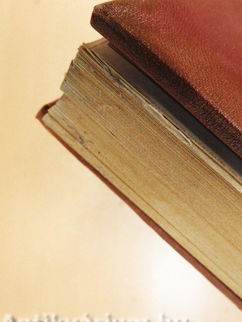 A gerinc kopott, megtört. A lapélek foltosak. Néhány lap éle vágáshibás.