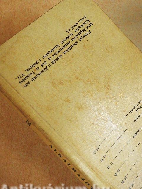 A borító elszíneződött. Két lapon ceruzás aláhúzások találhatók.