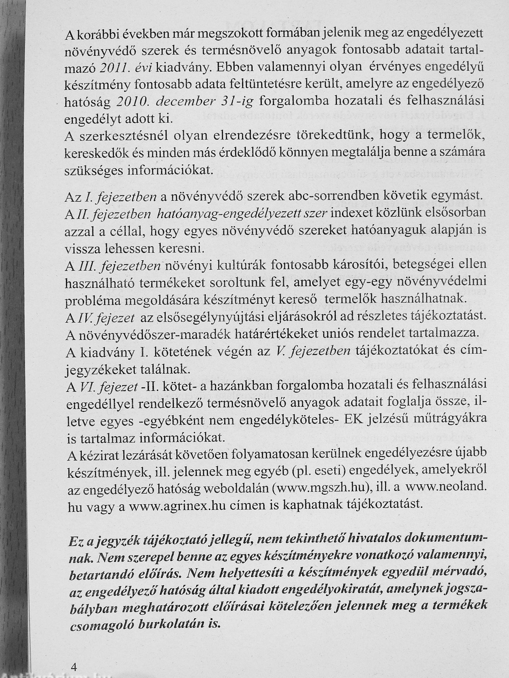 Növényvédő szerek, termésnövelő anyagok 2011. I-II.