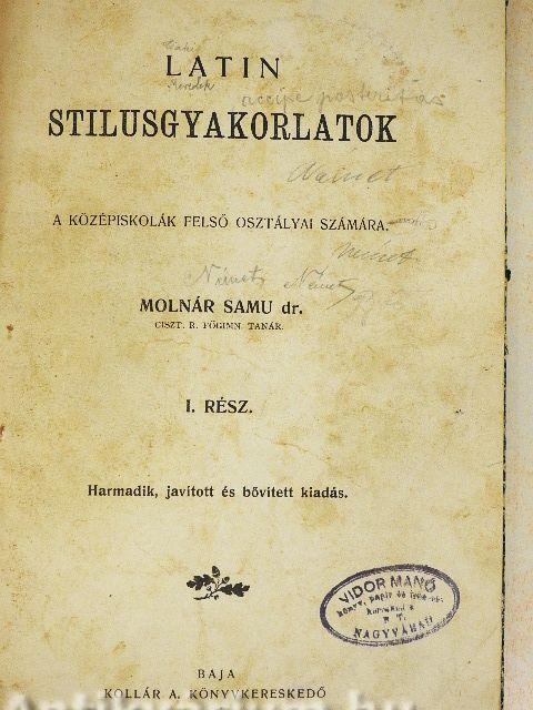 | Megjegyzés: | Harmadik, javított és bővített kiadás. Írta Dr. Molnár Samu ciszt. r. főgymn. tanár. Nyomatott Kollár A. könyvnyomdájában, Baján. |
