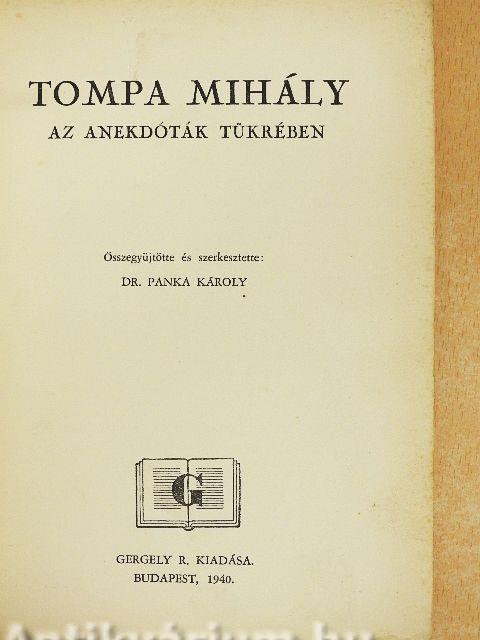 Tompa Mihály, a kitűnő pataki diák és költészete iránt ifjúkoromtól fogva nagy szeretettel viseltettem. Ez indított arra, hogy még pataki diákkoromban, mint legátus, elmenjek Hanvára, ahol Tompa életének nagy részét leélte és ahol hamvai is nyugosznak. Ennek a fiatalkori emléknek a varázsa most arra késztetett, hogy szobrának leleplezésével kapcsolatosan, kegyeletem jeléűl összegyüjtsem a reá vonatkozó anekdótákat. Az itt közölt kis történetek egyrésze a szerkesztésemben kiadott Pataki Diákvilág Anekdótakincse 1-2. kötetében jelent meg, másrésze pedig ebben a formában itt lát először napvilágot. Ezért tartottam szükségesnek minden közleménynél a közlő nevét föltüntetni, valamint a közleményeket időrendben és tartalmuk szerint csoportosítani, hogy így azok egy egészet képezzenek.