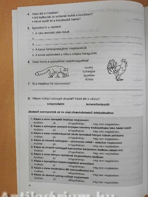 Javasolt szempontok az év eleji olvasásfelmérő értékeléséhez 4
