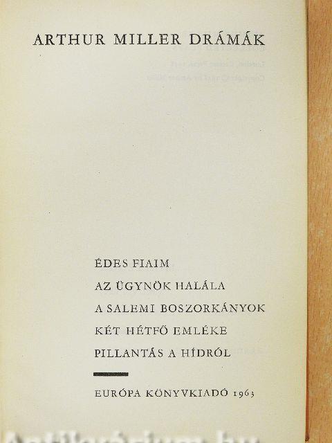 Arthur Miller műveinek az Antikvarium.hu-n kapható vagy előjegyezhető listáját itt tekintheti meg: Arthur Miller könyvek, művek