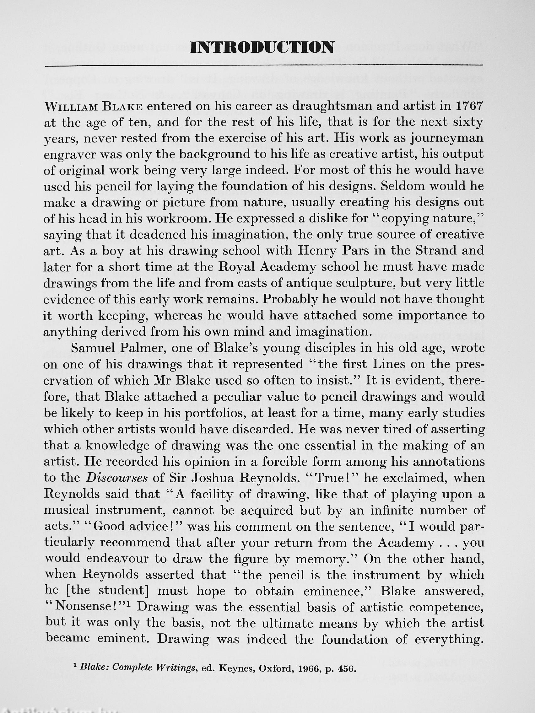 These plates are drawn from Blake's earliest surviving work to his last, and arranged, as nearly as possible, in chronological order. Sir Geoffrey Keynes' introduction is as excellent as his selection of the drawings themselves, lending insight into Blake's life, his temperament, and his development and achievement in the graphic arts. Concise, sensitive commentary accompanies each individual drawing. The drawings have been faithfully reproduced from originals in museums and private collections all over the world; wherever possible, they have been reproduced in their actual size. No art lover or art library should be without this handsome treasury of Blake's immensely original drawings. IVfore than just an art book, it is an adventure in the first fruits of an incredibly prolific, yet elusive imagination.