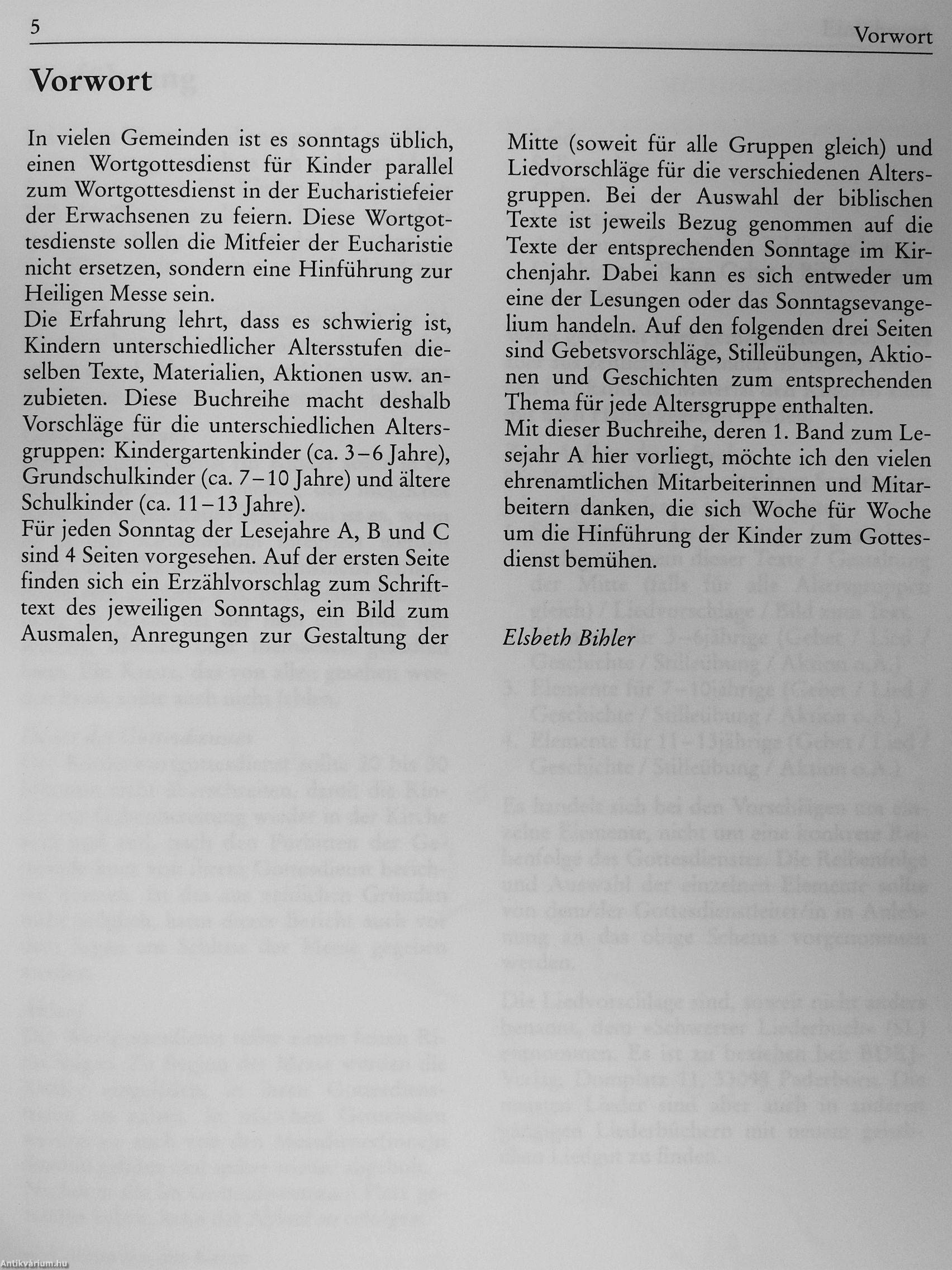 In vielen Gemeinden wird sonntags parallel zum Wortgottesdienst der Eucharistiefeier der Erwachsenen ein eigener Wortgottesdienst mit Kindern gefeiert. Dabei sind für Kinder unterschiedlicher Altersstufen jeweils andere Materialien und Aktionen erforderlich.