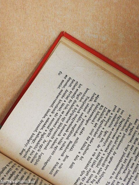 A borító kopott, a kötés megtört. Két lap szakadt. Az előlapon tulajdonosi bejegyzés látható.
