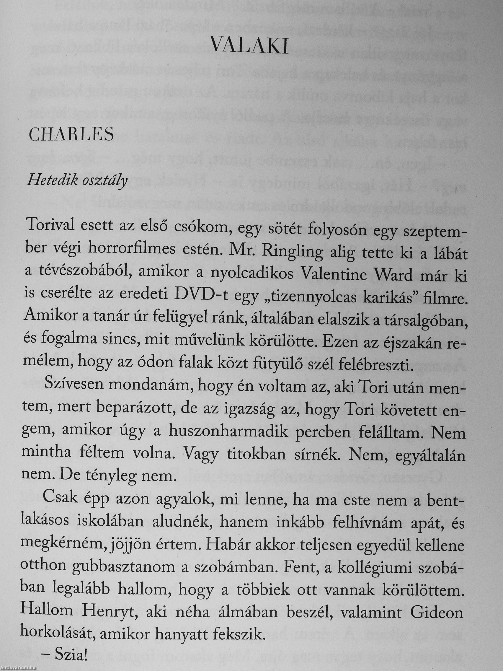 Victoria Belhaven-Wynford, vagyis Tori, és Charles Sinclair gyerekkoruk óta legjobb barátok. Ez a fiú az egyetlen ember, akiben a lány igazán megbízik. Van viszont egy olyan dolog, amiről nem beszélhet Charlesnak: az az ismeretlen, kellemetlen borzongás, ami azóta nem múlik, mióta az iskola legnépszerűbb srácával, Valentine-nal kezdett randizni. Tori önmagának se vallja be, hogy ami Valentine-t és őt összeköti, annak valójában semmi köze az igaz szerelemhez. Valentine közelében ugyanis sosem járja át az a boldogság, amit a legjobb barátja mellett érez.
