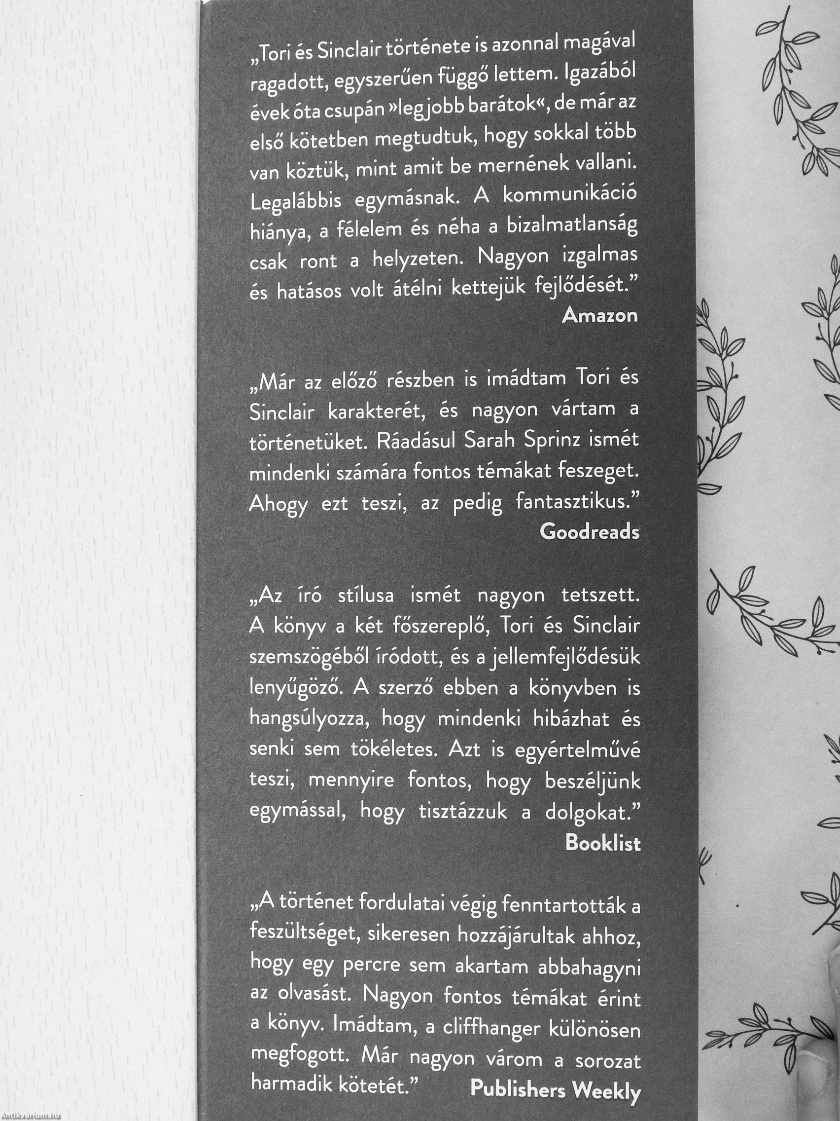 „Már az előző részben is imádtam Tori és Sinclair karakterét, és nagyon vártam a történetüket. Ráadásul Sarah Sprinz ismét mindenki számára fontos témákat feszeget. Ahogy ezt teszi, az pedig fantasztikus."