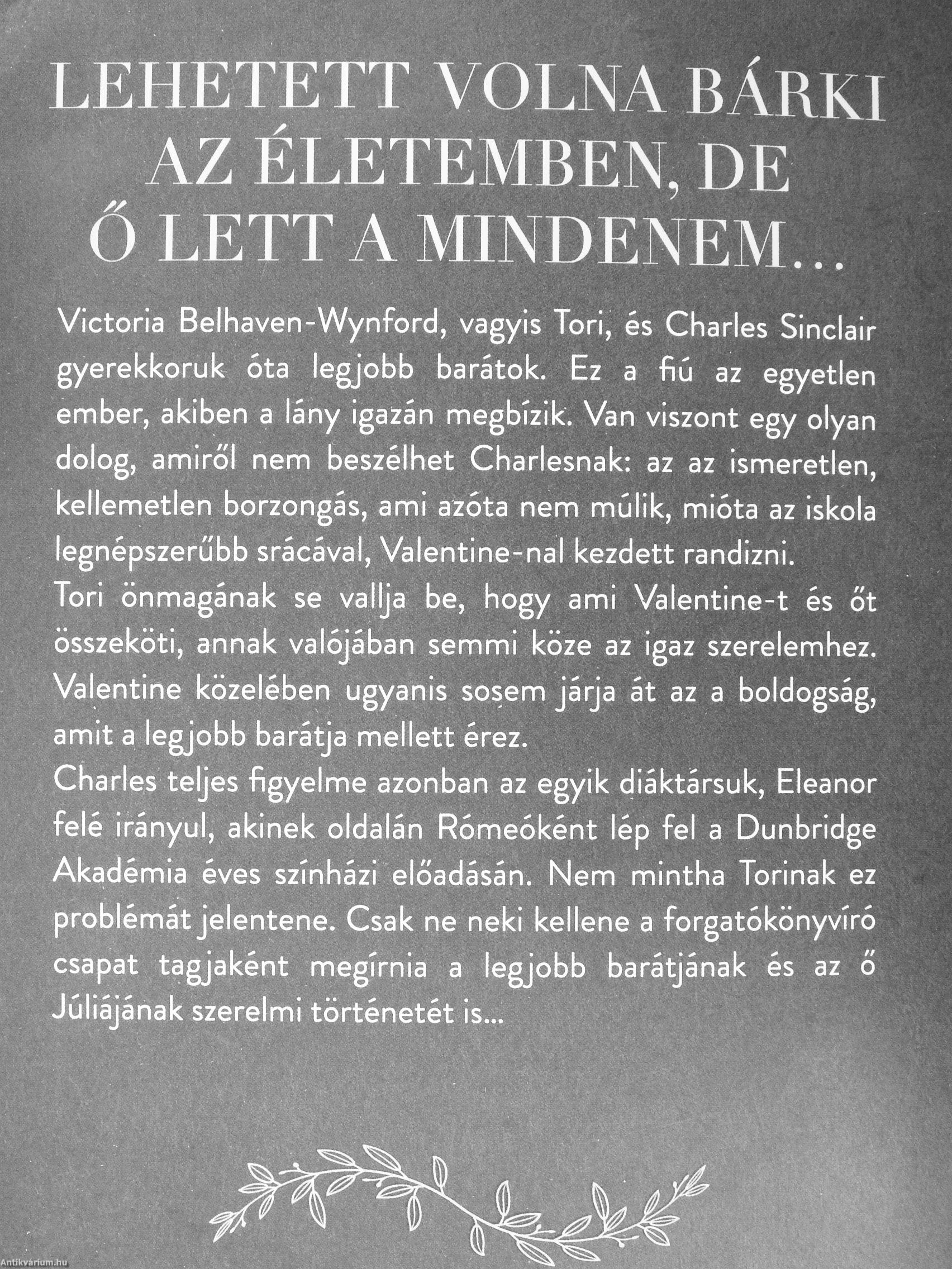 Charles teljes figyelme azonban az egyik diáktársuk, Eleanor felé irányul, akinek oldalán Rómeóként lép fel a Dunbridge Akadémia éves színházi előadásán. Nem mintha Torinak ez problémát jelentene. Csak ne neki kellene a forgatókönyvíró csapat tagjaként megírnia a legjobb barátjának és az ő Júliájának szerelmi történetét is