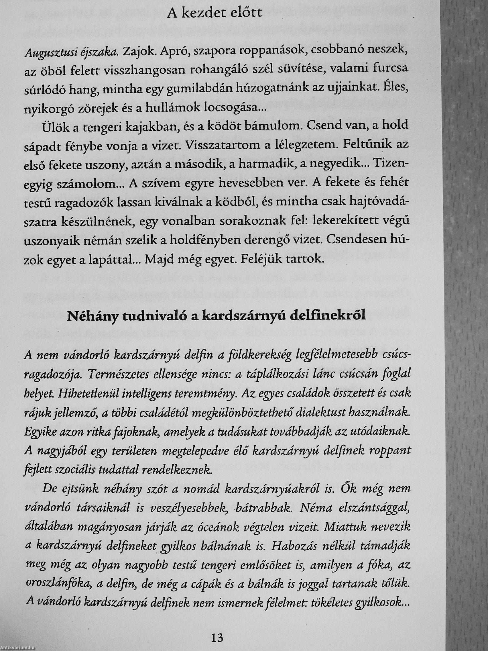 Most pedig - ahogy azt mondják - afféle ízelítőként jöjjön egy kép: egy kísértetiesen fehér kéz mered ki a vízből, a, görcsösen szétterpesztett ujjak, mielőtt végleg eltűnnek a háborgó vízben, mintha még egyszer utoljára kétségbeesetten kapnának az ég felé. A tengeri szél üvöltve tombol körülöttem, az eső és a vízpermet az arcomba vág, miközben távolodom ettől a kísérteties kéztől, miközben vacogva, köhögve és fuldokolva úszom, próbálok úszni, hogy a hegyként fölém tornyosuló hullámok tajtékos csúcsai és sötéten örvénylő völgyei között hánykolódva elérjem a sziget csúcsát."