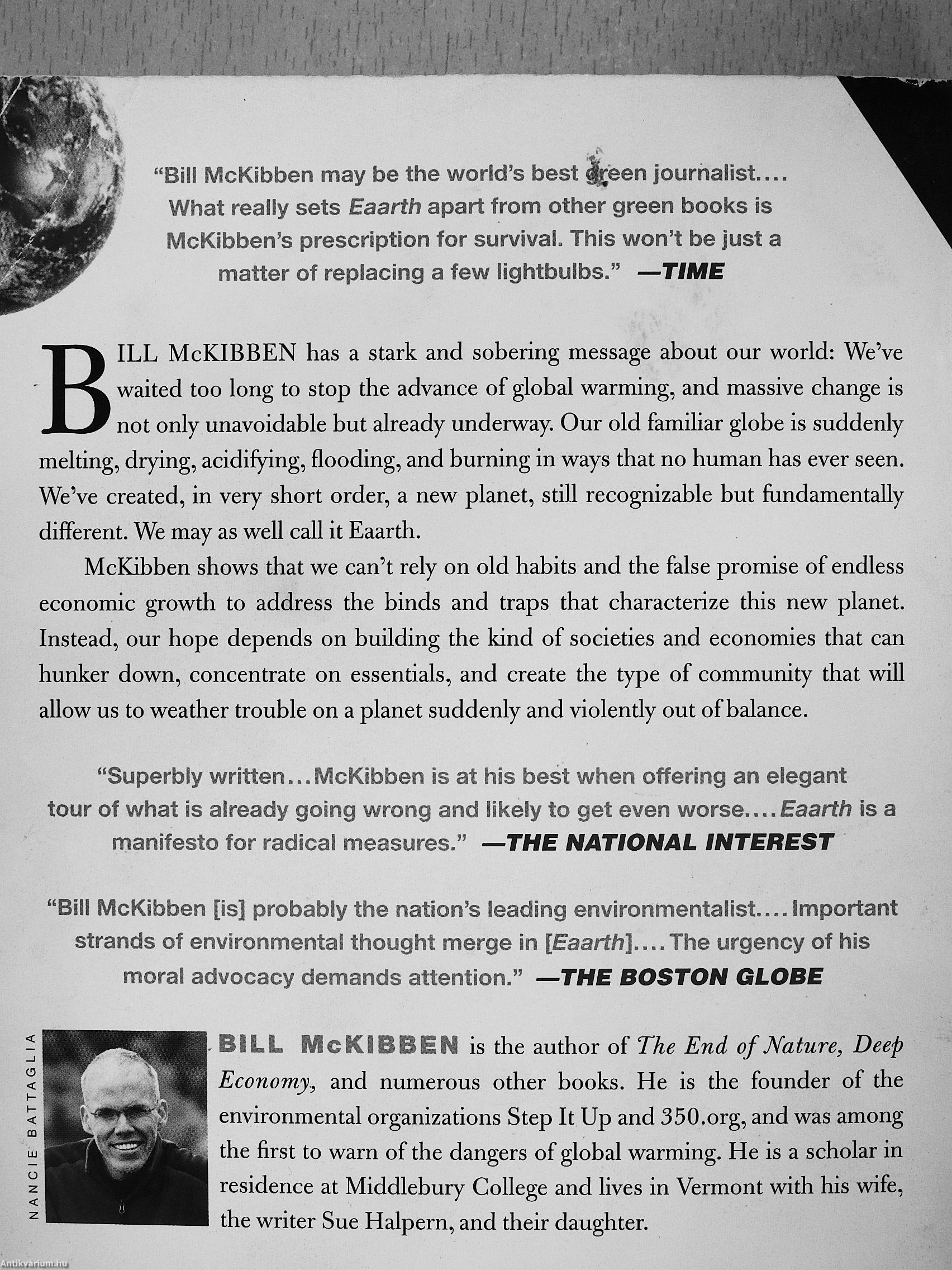Bill McKibben műveinek az Antikvarium.hu-n kapható vagy előjegyezhető listáját itt tekintheti meg: Bill McKibben könyvek, művek