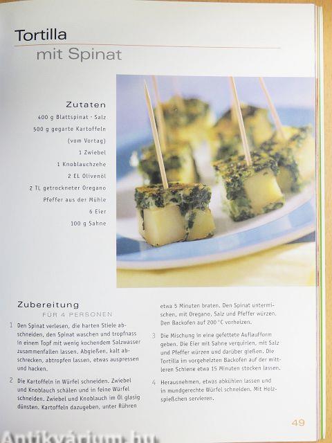 Wer Liebt sie nicht, die kleinen, feinen Appe-tizer, die besonders die Mittelmeerländer wie Italien und Spanien In Hülle und Fülle zu bieten haben? Ob als Auftakt eines Menüs, als Genusshäppchen für zwischendurch oder raffiniert zu einem Büfett kombiniert - gefüllte Oliven, marinierte Speckpflaumen und eingelegte Sardinen sind nur einige der Köstlichkeiten, die für gute Laune sorgen. Diese verführerische Auswahl lässtjeden ins Schwelgen geraten und den Hauptgang fast vergessen. Über 70 klassische und neue Vorspeisen kommen jetzt ganz groß raus und versprechen häppchenweise Hochgenuss.