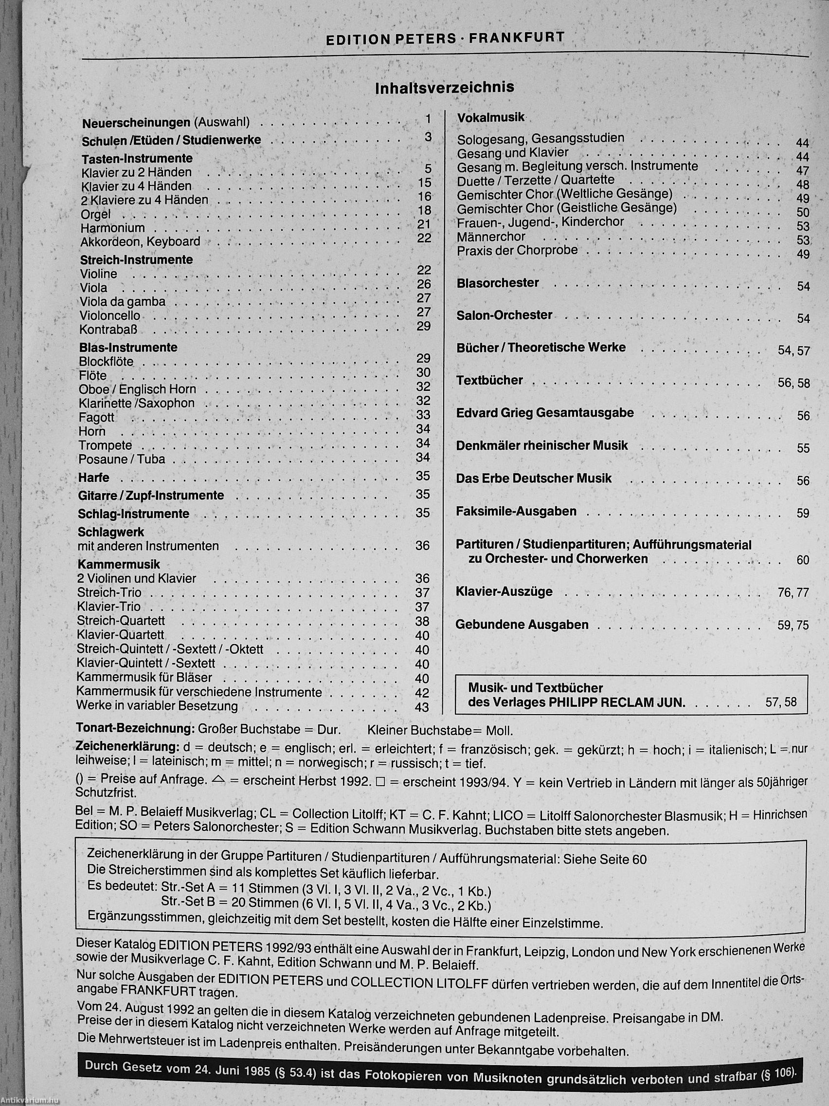Edition Peters Katalog 1992/93 Edition Peters Katalog 1992/93