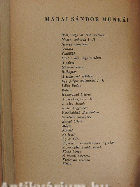 | Sorozatcím: | Márai Sándor munkái |