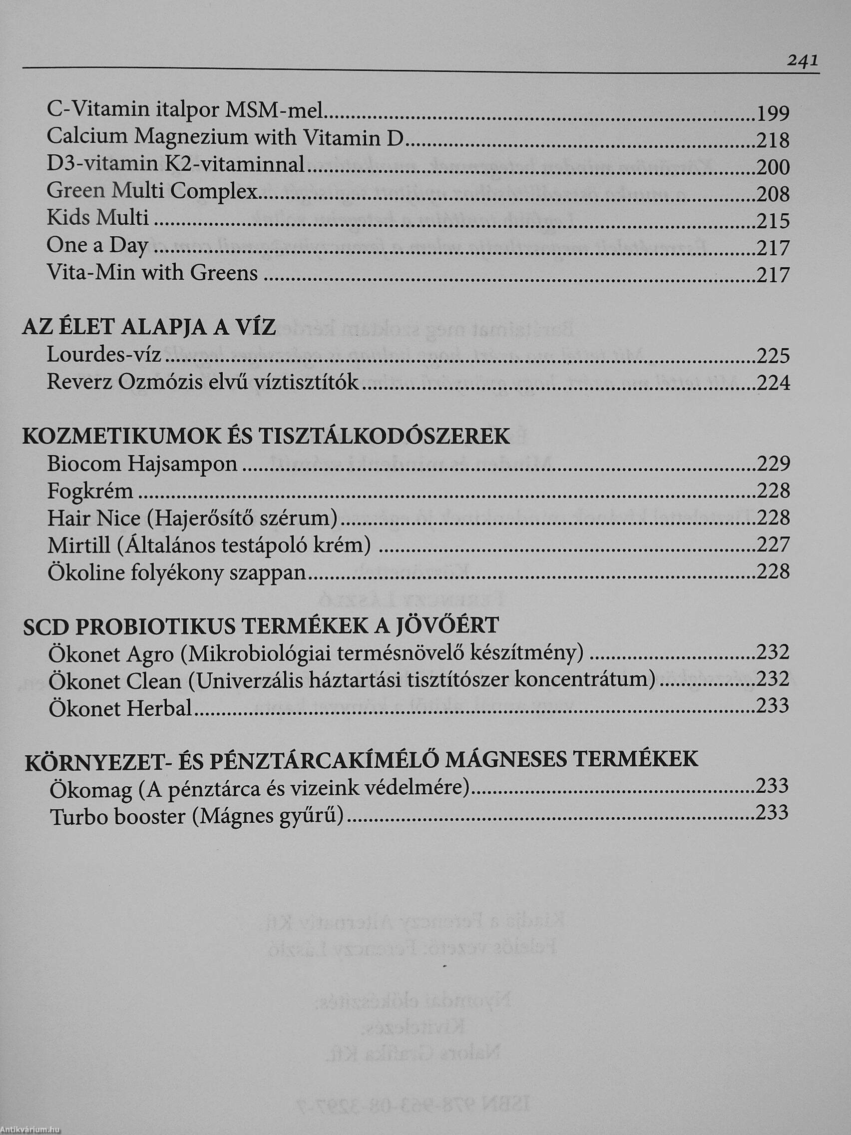 Ezt a jól szerkesztett, tartalmilag is kifogástalan, közérthető nyelven íródott könyvet feltétlen ajánlom orvos kollegáimnak is, hogy a gyógyszerek nélküli világba is betekintést nyerjenek. Ismerjék meg, hogy saját betegeik gyógyszerek nélkül vagy azok mellett hogyan próbálják egészségük védelmét biztosítani. A könyvismeret alapján lehetőség nyílik a termékek kipróbálására saját magukon és beteganyagukon. Ajánlom továbbá bárkinek, aki saját maga, közvetlen családtagjai és/vagy mások egészségvédelme érdekében akár tudatosan vagy csak anélkül valamit tenni, cselekedni szeretnének."