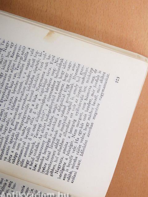 A védőborító elszíneződött, szakadozott. A lapélek és néhány lap foltos.