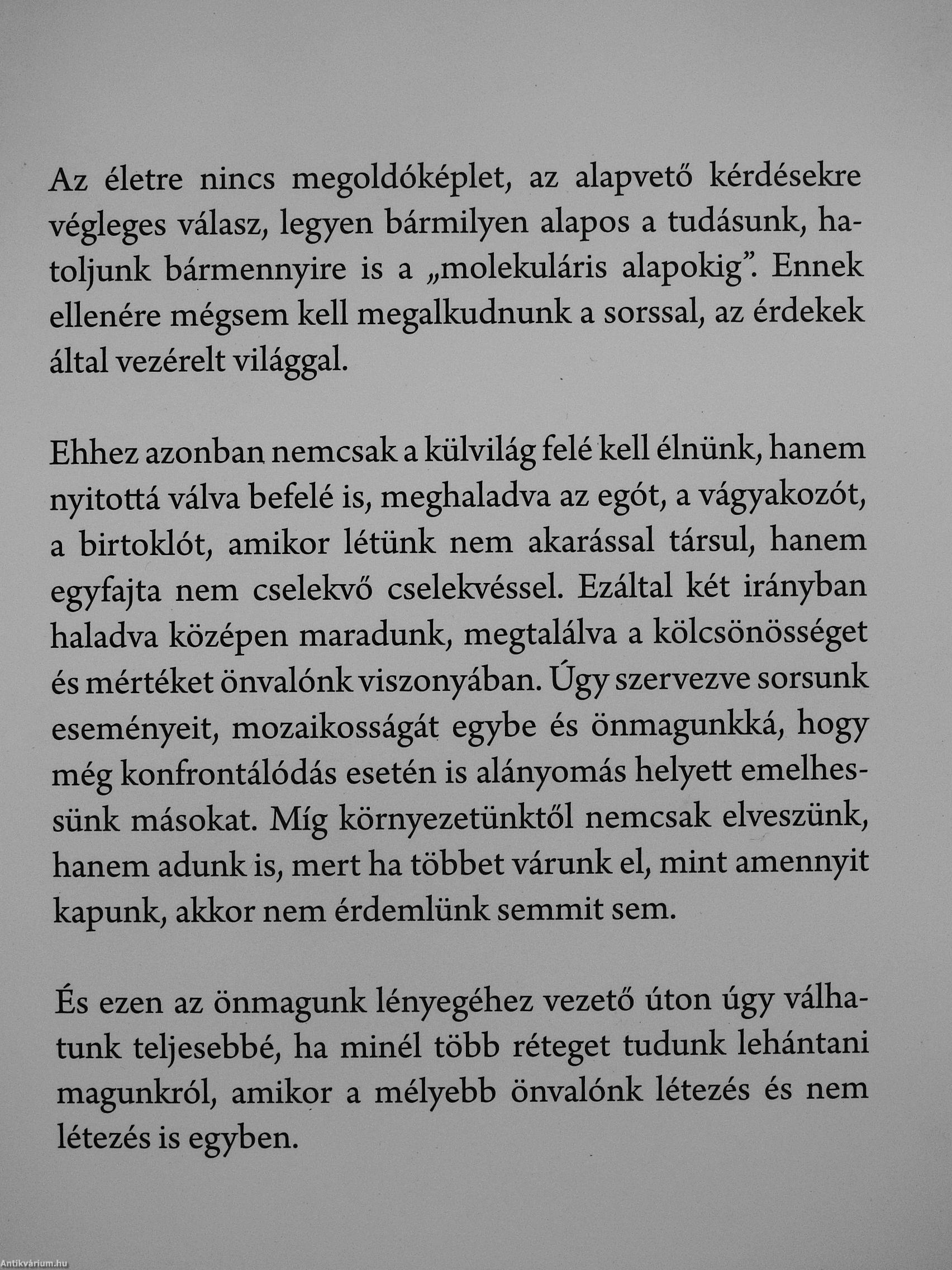 Az életre nincs megoldóképlet, az alapvető kérdésekre végleges válasz, legyen bármilyen alapos a tudásunk, hatoljunk bármennyire is a ,,molekuláris alapokig" Ennek ellenére mégsem kell megalkudnunk a sorssal, az érdekek által vezérelt világgal.