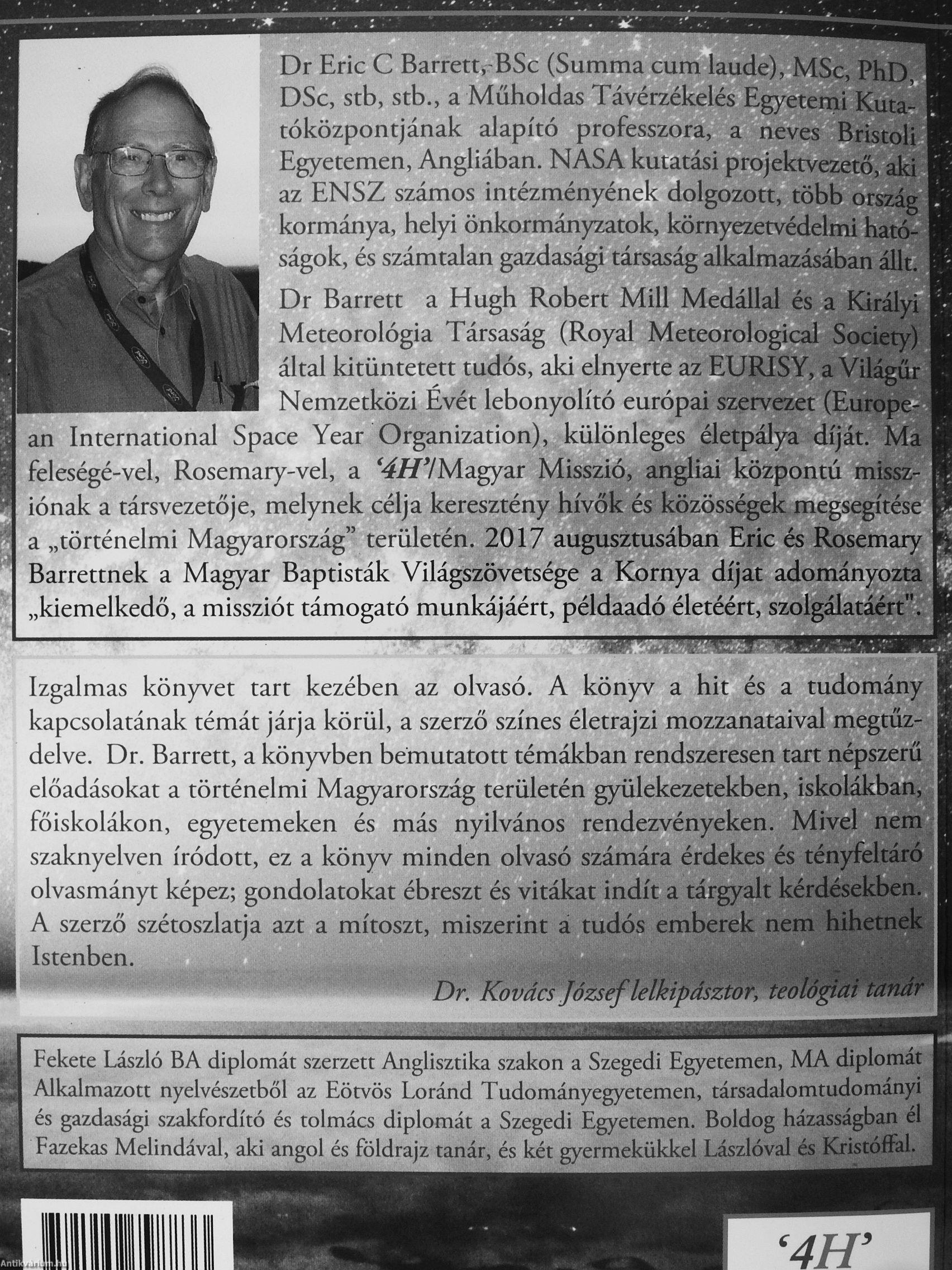 Izgalmas könyvet tart kezében az olvasó. A könyv a hit és a tudomány kapcsolatának témát járja körül, a szerző színes életrajzi mozzanataival megtűzdelve. Dr. Barrett, a könyvben bemutatott témákban rendszeresen tart népszerű előadásokat a történelmi Magyarország területén gyülekezetekben, iskolákban, főiskolákon, egyetemeken és más nyilvános rendezvényeken. Mivel nem szaknyelven íródott, ez a könyv minden olvasó számára érdekes és tényfeltáró olvasmányt képez; gondolatokat ébreszt és vitákat indít a tárgyalt kérdésekben. A szerző szétoszlatja azt a mítoszt, miszerint a tudós emberek nem hihetnek; Istenben.
