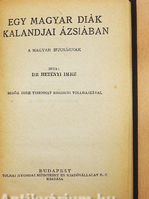 | Megjegyzés: | Sebők Imre tizenhat eredeti tollrajzával illusztrálva. Ezt a könyvet, amelyet a kezében tart, kiadta, illusztráltatta, szedte, körforgógépein nyomta és kötötte a Tolnai-nyomda Budapesten. A borító grafikája K. Sávely Dezső munkája. |