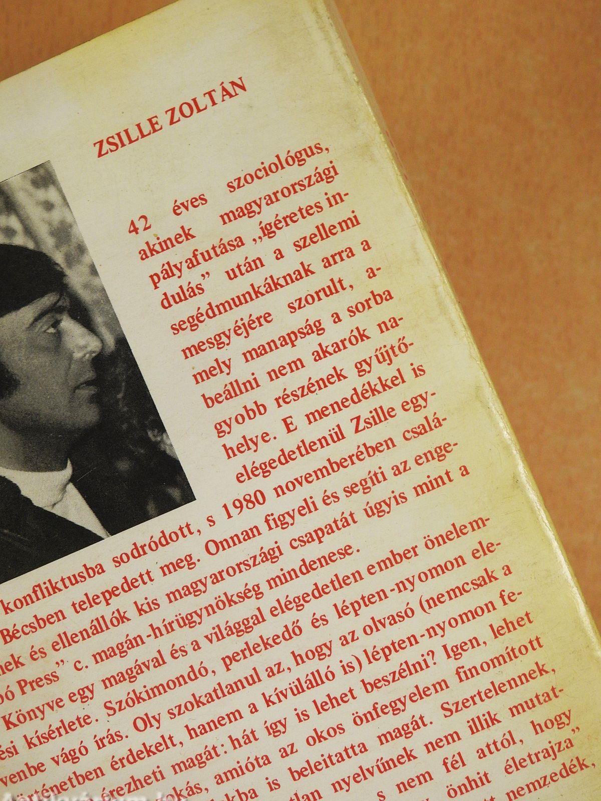 42 éves szociológus, akinek magyarországi pályafutása "ígéretes indulás" után a szellemi segédmunkáknak arra a mesgyéjére szorult, amely manapság a sorba beállni nem akarók nagyobb részének gyűjtőhelye. E menedékkel is elégedetlenül Zsille egyre több konfliktusba sodródott, s 1980 novemberében családostul Bécsben telepedett meg. Onnan figyeli és segíti az engedetlenek és ellenállók kis magyarországi csapatát úgyis mint a "Bibó Press" c. magán-hírügynökség mindenese.