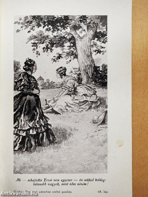 Az udvarház magas dombon emelkedett. Onnan uralkodott az alatta elterülő falun, s vetett hosszú árnyakat, ha napfényes alkonyon vagy holdas éjjel a folyam tükrében nézegette magát. Nagy négyszög, földszintes épület volt, belső udvar nélkül, de ha ennyiben különbözött is a várkastélyoktól, annyiban épen nem hasonlított a közönséges udvarházakhoz, a mennyiben négy úgynevezett tornyos bástyával büszkélkedett, magas emelete majdnem kettősnek látszott, széles zsindelyfödele pazar szeszélylyel nyújtózott a magasba, homlokzatán óriás s már megfeketült kőczímer gúnyolta a házőrző kőrisfák százados fiatalságát s kinyúló tornáczából oly fennhéjázó kilátás nyílt, hogy a birtokos udv arházához tartozóknak képzelhette a völgy hosszában elszórt falucskákat. Vissza