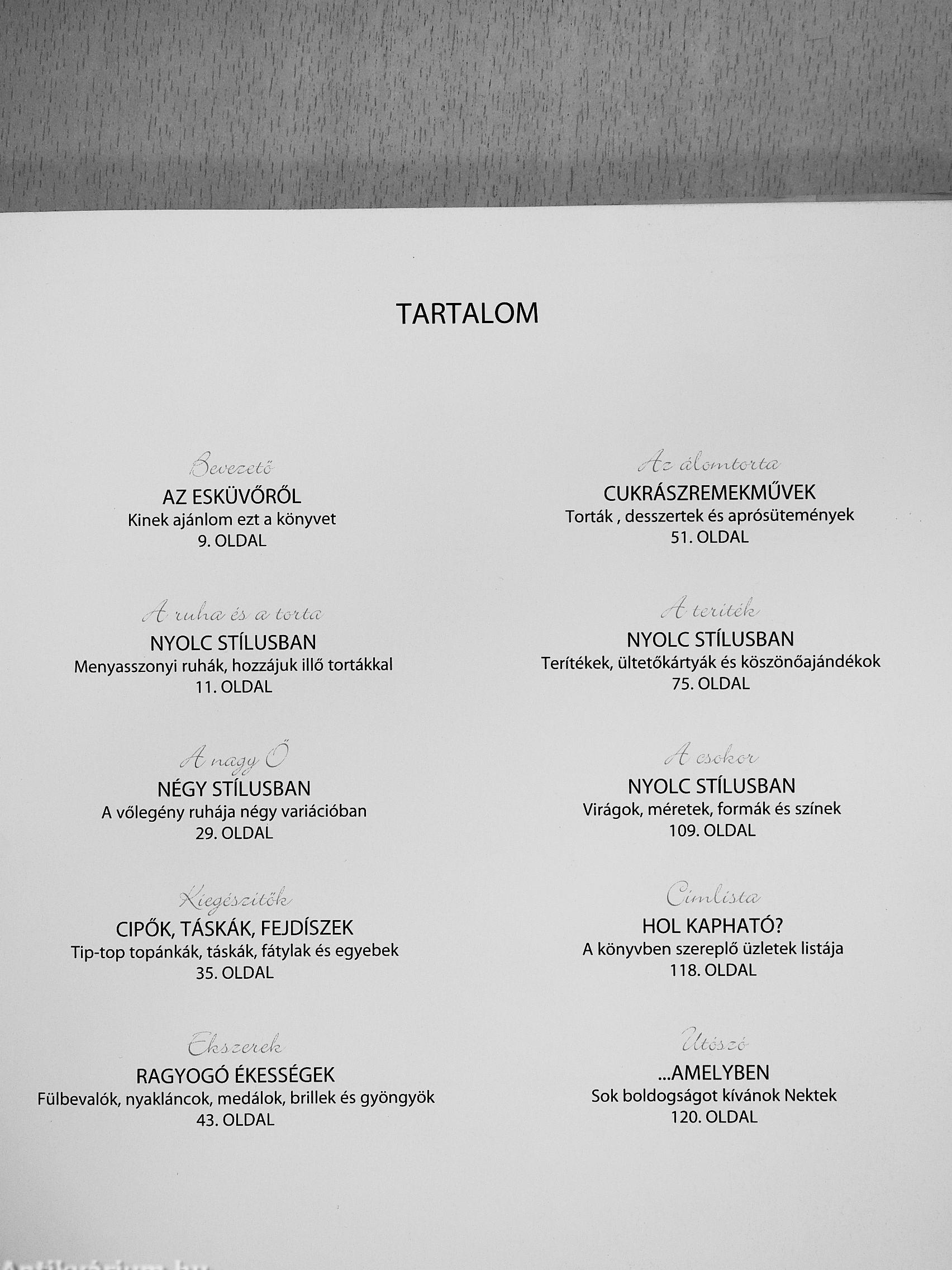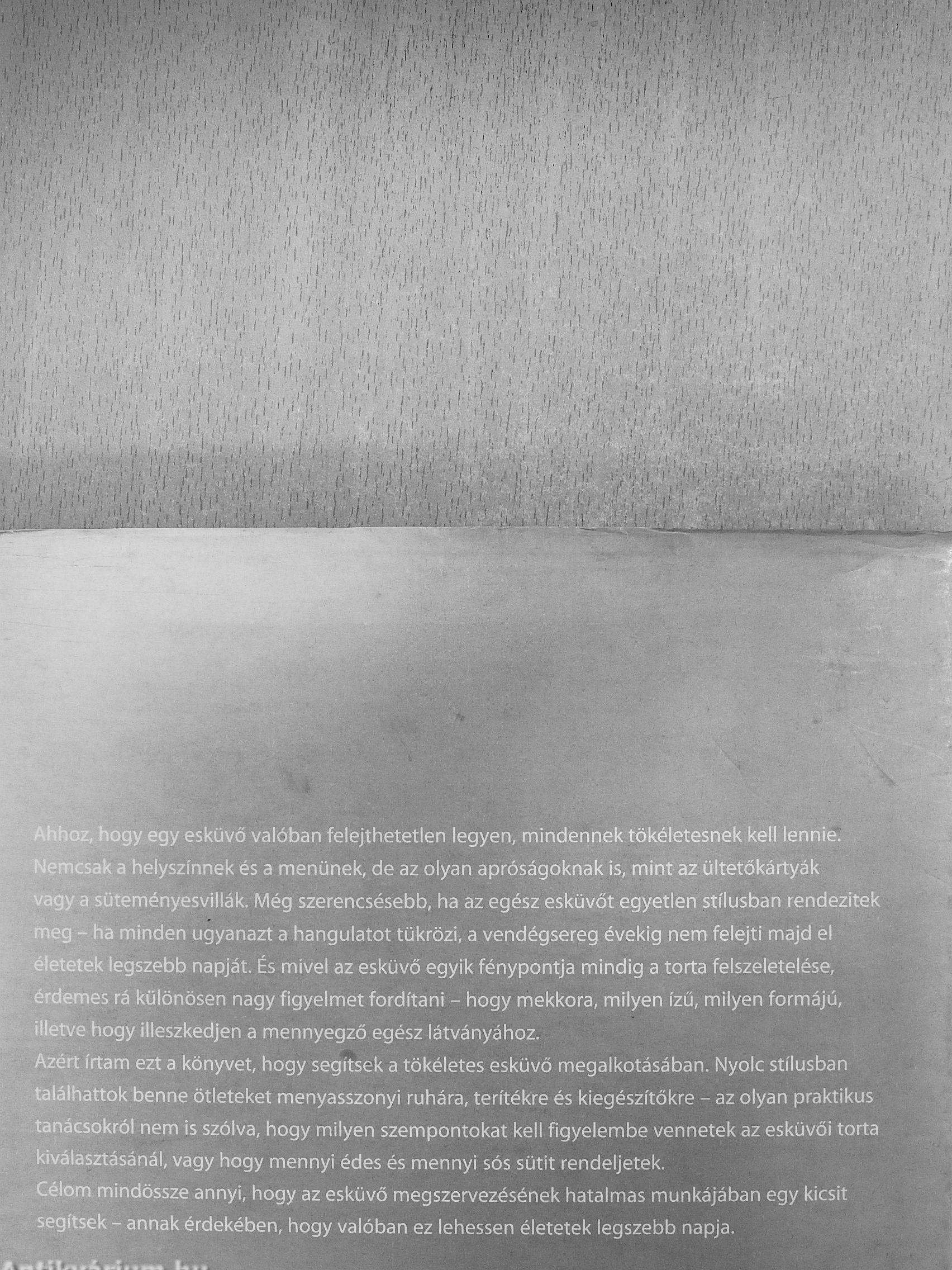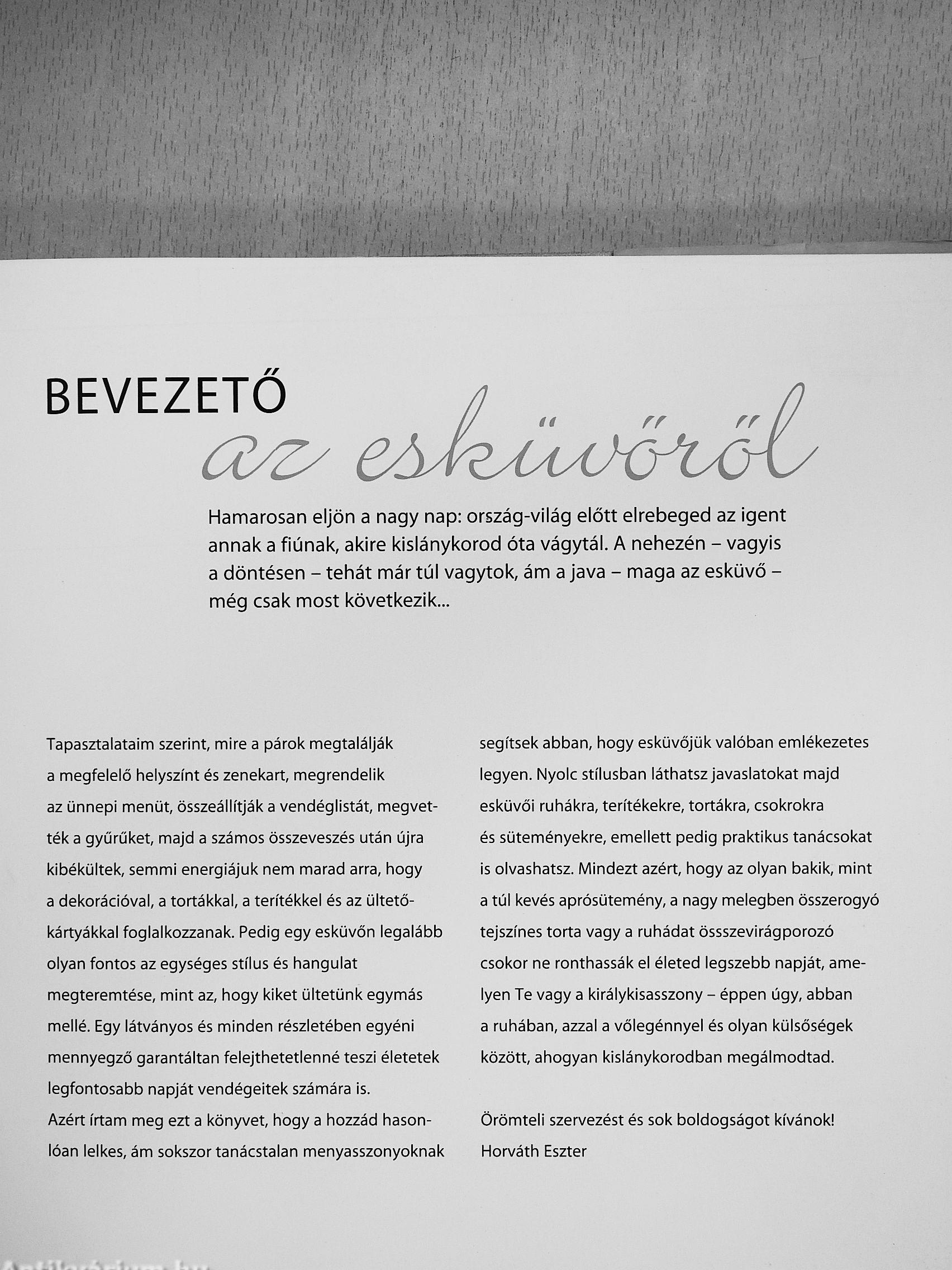 Azért írtam ezt a könyvet, hogy segítsek a tökéletes esküvő megalkotásában. Nyolc stílusban találhattok benne ötleteket menyasszonyi ruhára, terítékre és kiegészítőkre - az olyan praktikus tanácsokról nem is szólva, hogy milyen szempontokat kell figyelembe vennetek az esküvői torta kiválasztásánál, vagy hogy mennyi édes és mennyi sós sütit rendeljetek. Célom mindössze annyi, hogy az esküvő megszervezésének hatalmas munkájában egy kicsit segítsek - annak érdekében, hogy valóban ez lehessen életetek legszebb napja.