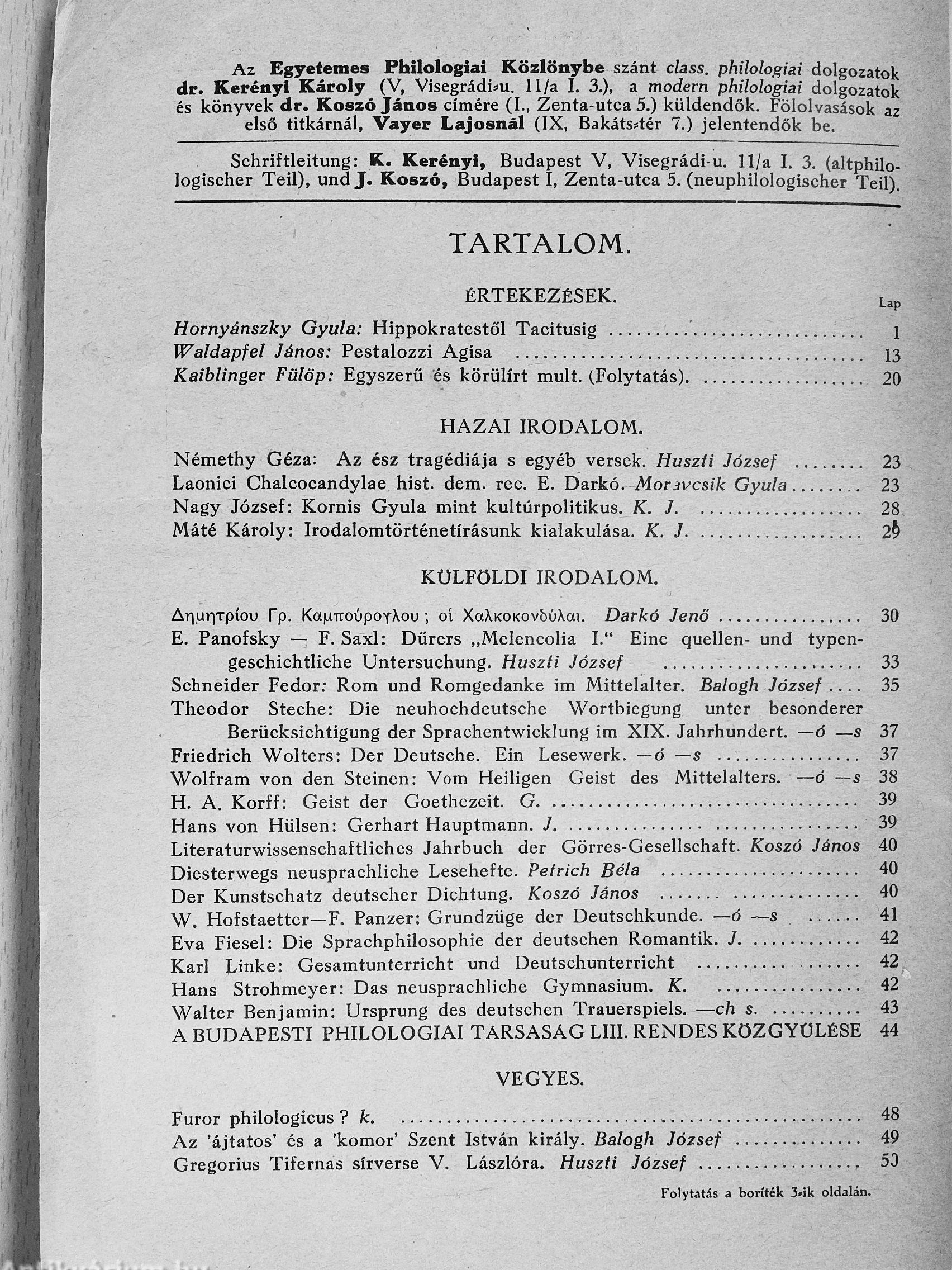 Sorozatcím: Egyetemes Philologiai Közlöny