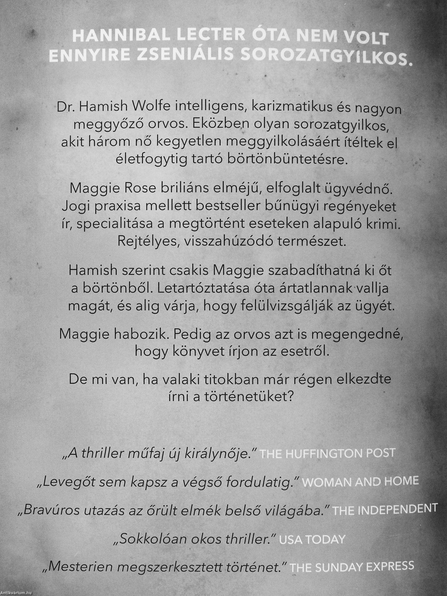 „A thriller műfaj új királynője." „Levegőt sem kapsz a végső fordulatig." „Bravúros utazás az őrült elmék belső világába." „Sokkolóan okos thriller^ „Mesterien megszerkesztett történet.