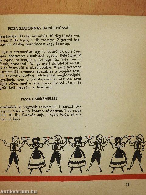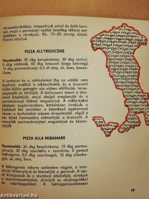 A pizza napjaink kétségtelenül egyik legnépszerűbb étele. Eredetileg olasz, de ismeretes szinte az egész világon. Nem nagy és előkelő éttermek konyháin készül - bár néha ilyen helyeken is kapható - hanem kisvendéglőkben, gyorsbüfékben, sőt külön pizzasütőknél is. Megőrizte ugyan sajátos olasz jellegét, de az egyes országok nemzeti konyhái is tettek hozzá valamit, a helyi anyagoktól, szokásoktól függően. A receptek összeállításánál figyelembe vettük a sajátos magyar ízlést is, amely igazodik a nálunk beszerezhető anyagokhoz.