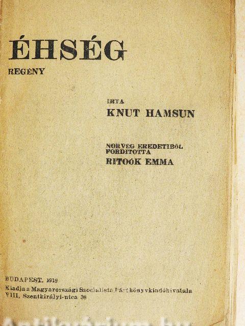 Knut Hamsun műveinek az Antikvarium.hu-n kapható vagy előjegyezhető listáját itt tekintheti meg: Knut Hamsun könyvek, művek