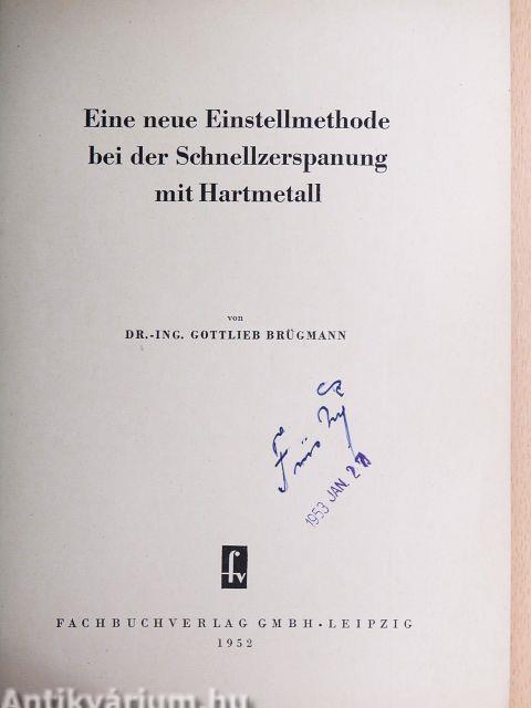 Eine neue Einstellmethode bei der Schnellzerspanung mit Hartmetall