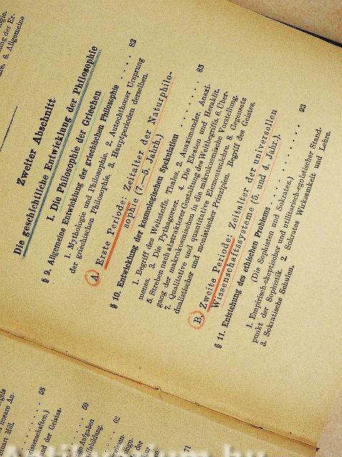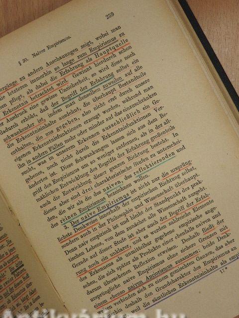 | Megjegyzés: | Kilencedik kiadás. Nyomtatta Bär & Hermann, Lipcse. A könyvbe kötött melléklettel: A filozófia történetének és főbb irányainak táblázatos áttekintése. |