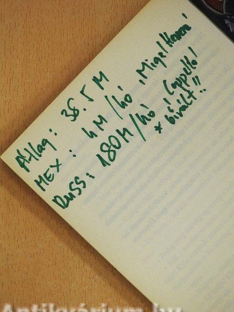 A hátsó borító sarka sérült, egy lapon bejegyzés látható.