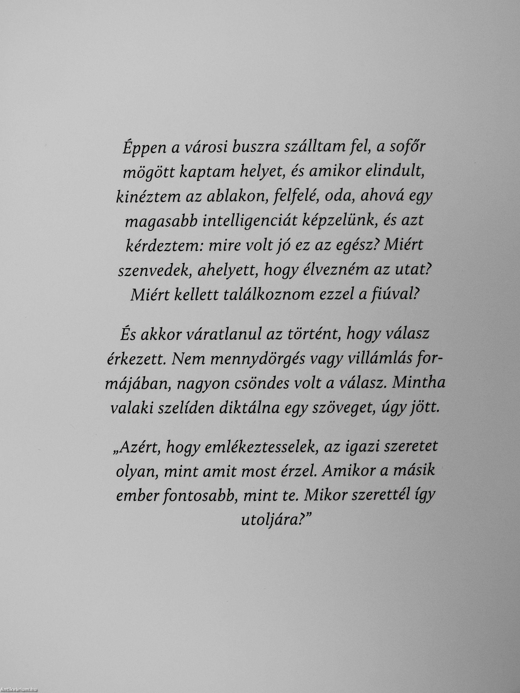„Azért, hogy emlékeztesselek, az igazi szeretet olyan, mint amit most érzel. Amikor a másik ember fontosabb, mint te. Mikor szerettél így utoljára?"