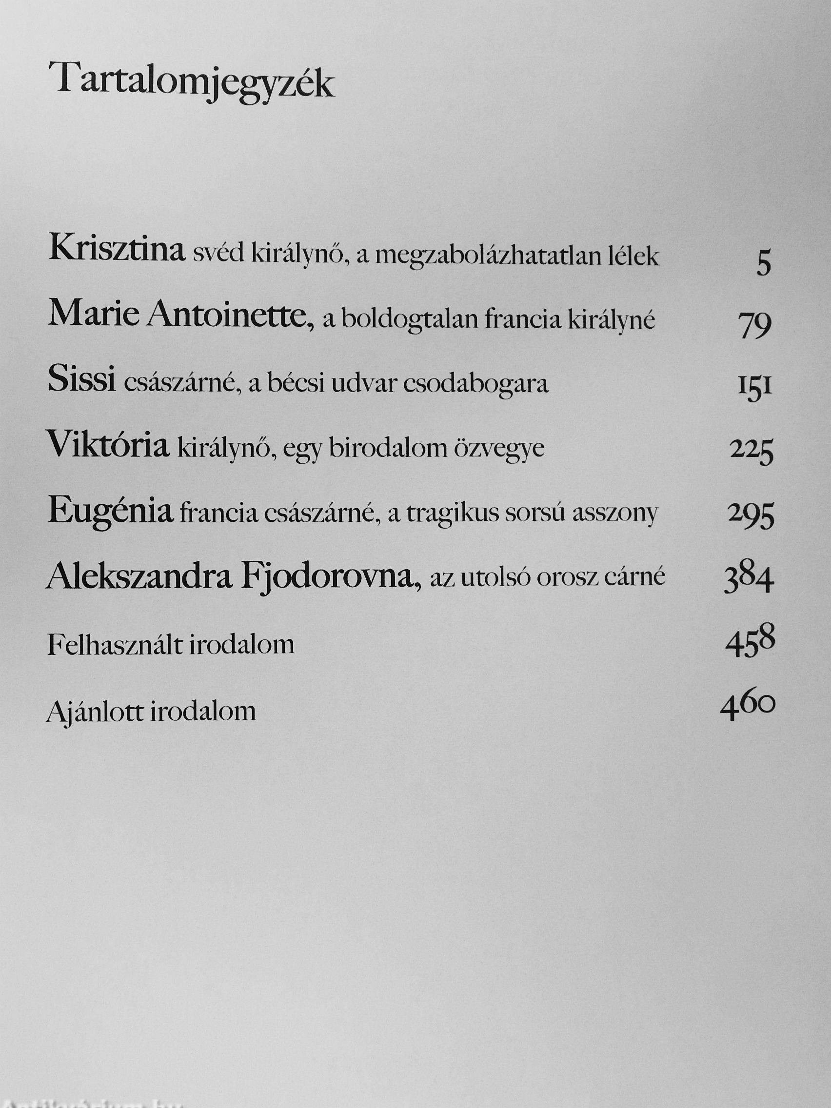 A királynők életét általában romantikus tündérmeseként képzeljük magunk elé. Az őket övező pompa és a népüktől kapott szeretet azonban nem elég ahhoz, hogy feledtesse velük életük viszontagságait. Nem adhatták át magukat a szerelemnek, hiszen házasságuk államügy volt, és személyes tragédiáikon kívül egy birodalom terhe is nyomta vállukat.