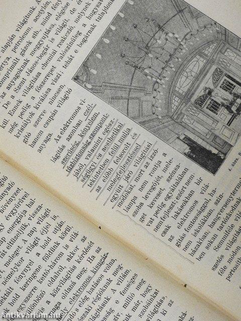 Az elektromos világítás hazánkban mindinkább terjed; a nagyobb városok legnagyobb részében van már központi elektromos áramfejlesztő-telep, s most már a kisebb városok, községek is azon vannak, hogy elektromos világításhoz jussanak, vagy külön telep felállításával, vagy már egy ott meglévő ipartelepből akarnak világítani, ha ez a telep világításra is berendezkedik, vagy pedig a szomszédos helység telepéből akarják átvezetni az energiát. Vissza